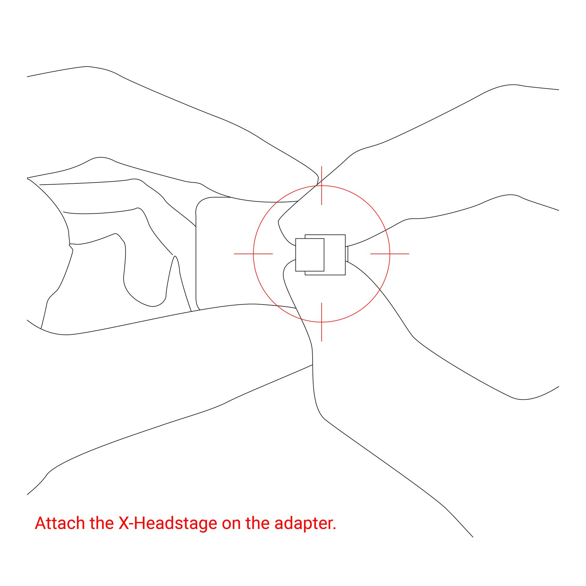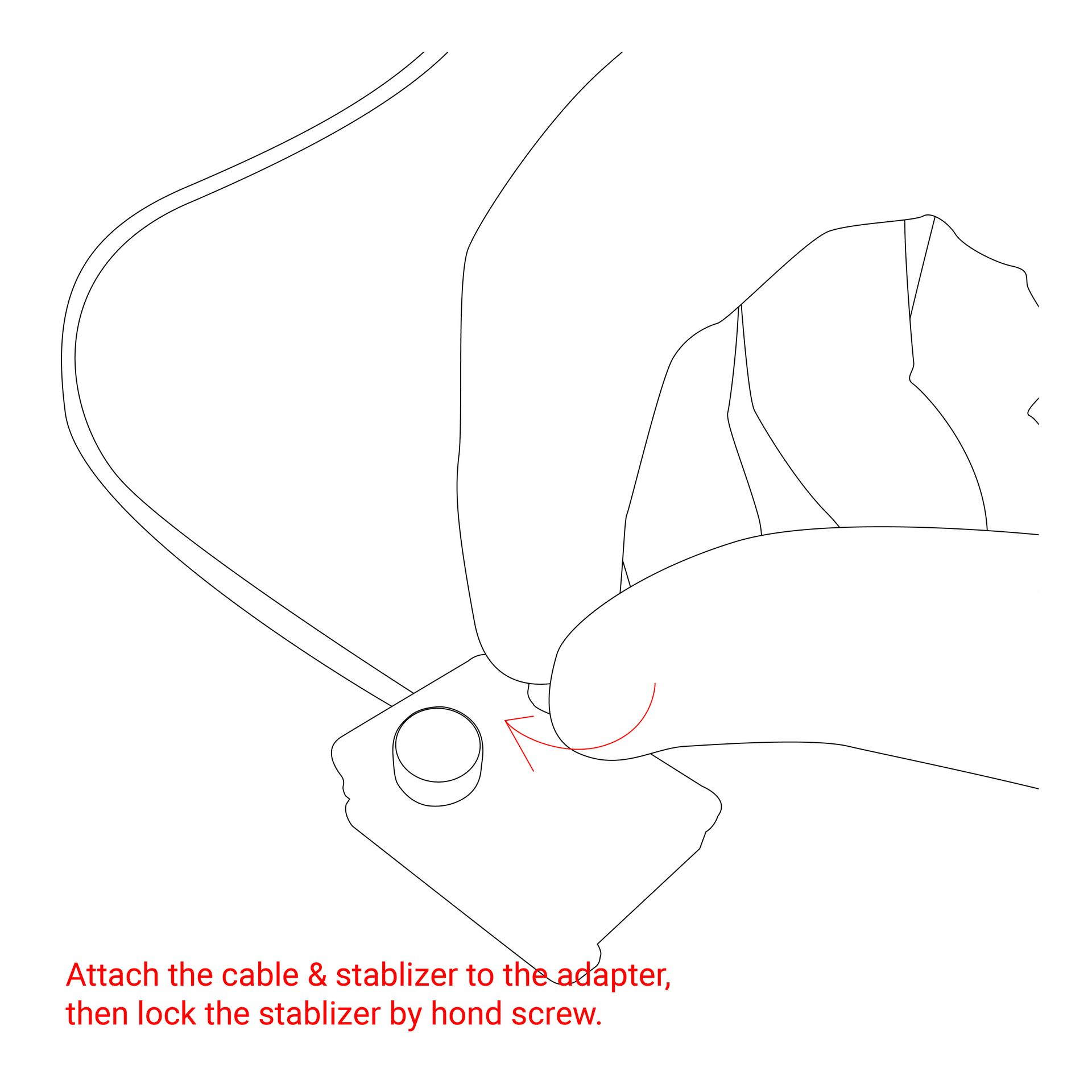 While pressing the X-Headstage on the adapter, push the HDMI cable into the X-Headstage. Install the Stabilizer and secure the attachment using the thumb screw.
